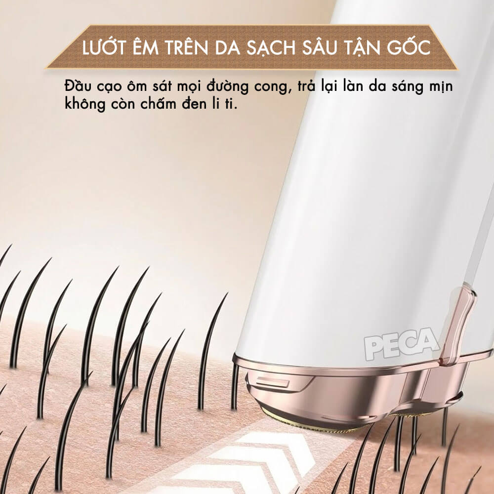 - Đối với lông mặt/cơ thể nhỏ, di chuyển máy theo chuyển động tròn nhẹ nhàng hoặc theo hướng ngược lại với chiều lông mọc.
