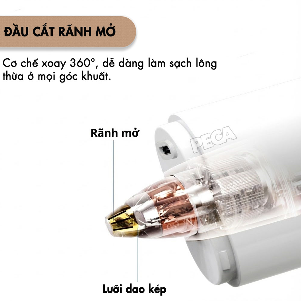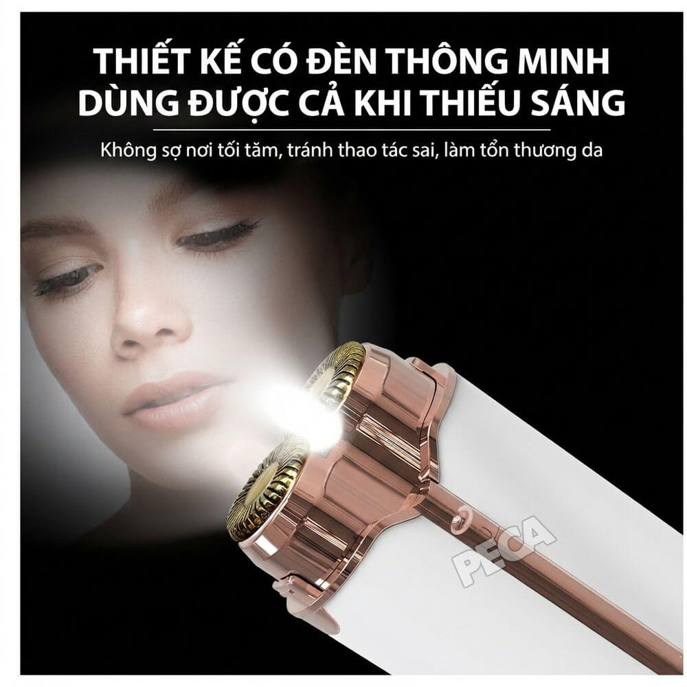 Tích hợp đèn chiếu sáng ngay tại đầu cắt, giúp bạn dễ dàng quan sát và thao tác chính xác ngay cả ở những nơi thiếu sáng hoặc vùng da khó nhìn thấy lông tơ.
