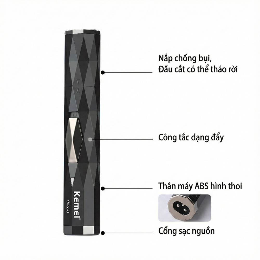 Kemei KM-6673 là dòng máy chăm sóc cá nhân chuyên nghiệp, kết hợp hoàn hảo giữa công năng tỉa lông mũi và cạo viền râu tóc. Với thiết kế sang trọng và động cơ bền bỉ, đây là phụ kiện không thể thiếu giúp phái mạnh duy trì diện mạo lịch lãm, gọn gàng mỗi ngày.