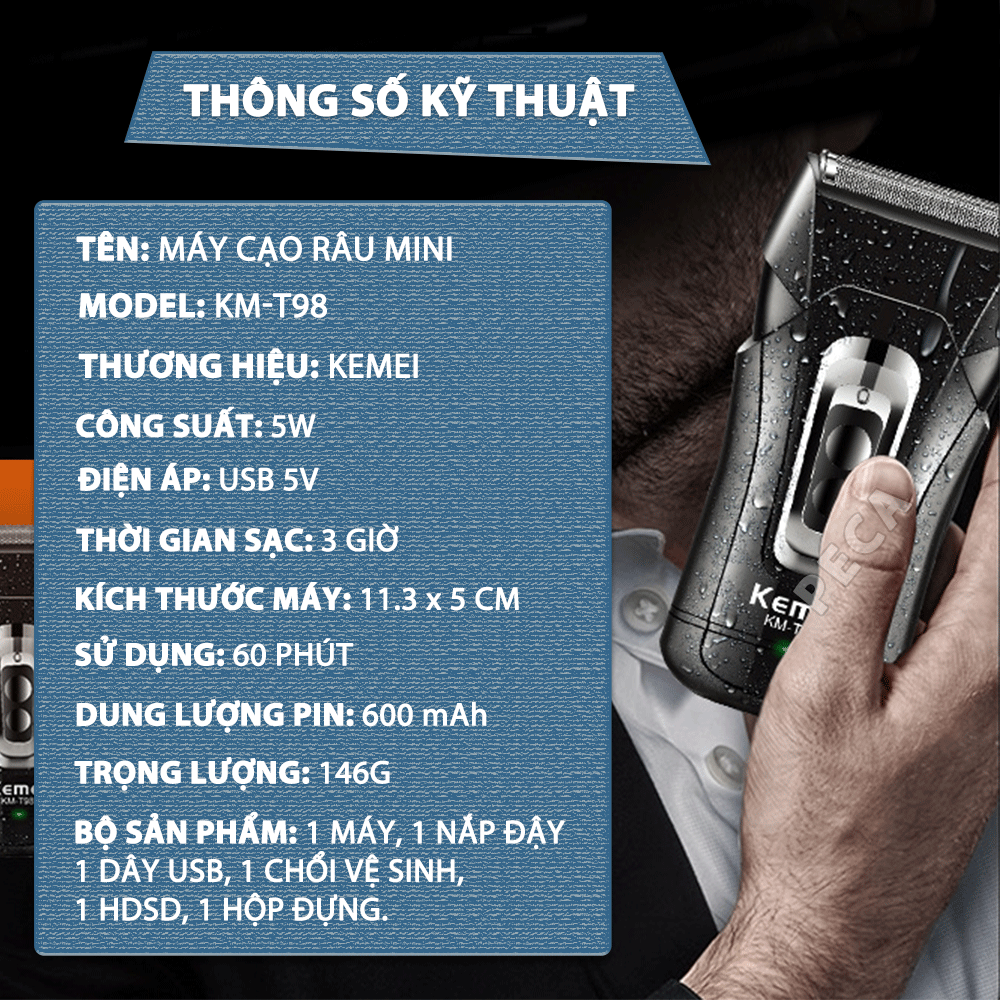 Thông số kỹ thuật máy cạo râu Kemei KM-T98: