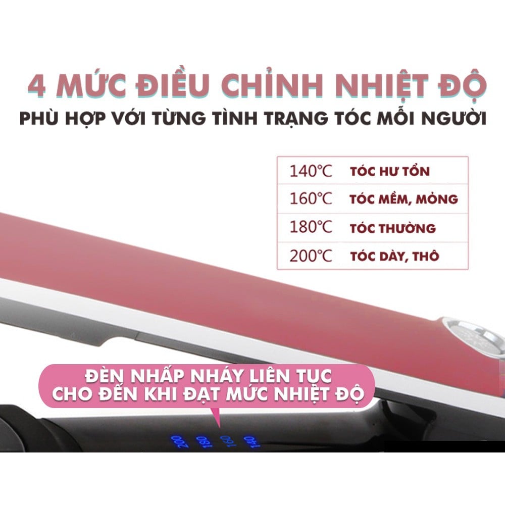 - Với những loại tóc khó ép thẳng như tóc dày, cứng, tóc xoăn… chỉnh nhiệt độ cao khoảng từ 190 đến 220 độ C.