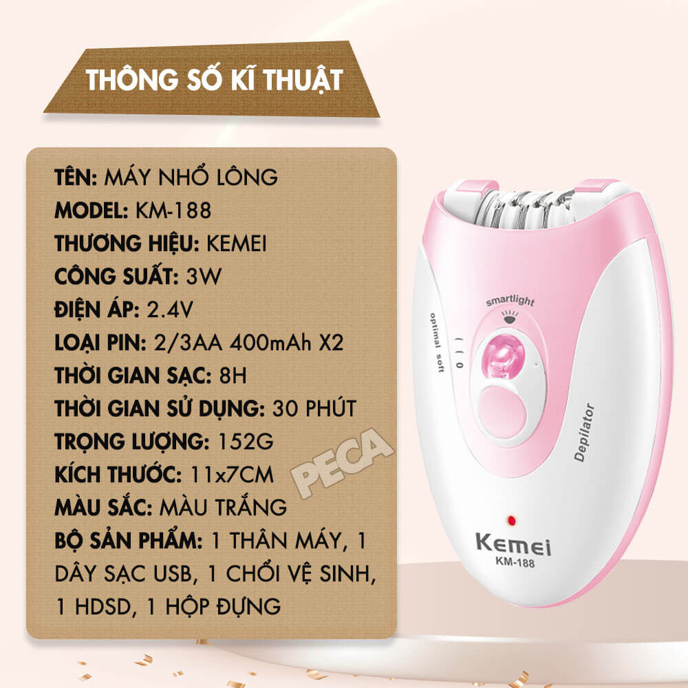 MÁY NHỔ LÔNG NỮ KEMEI KM-188 SẠCH LÔNG TẬN GỐC, DA MỊN MÀNG LÂU DÀI