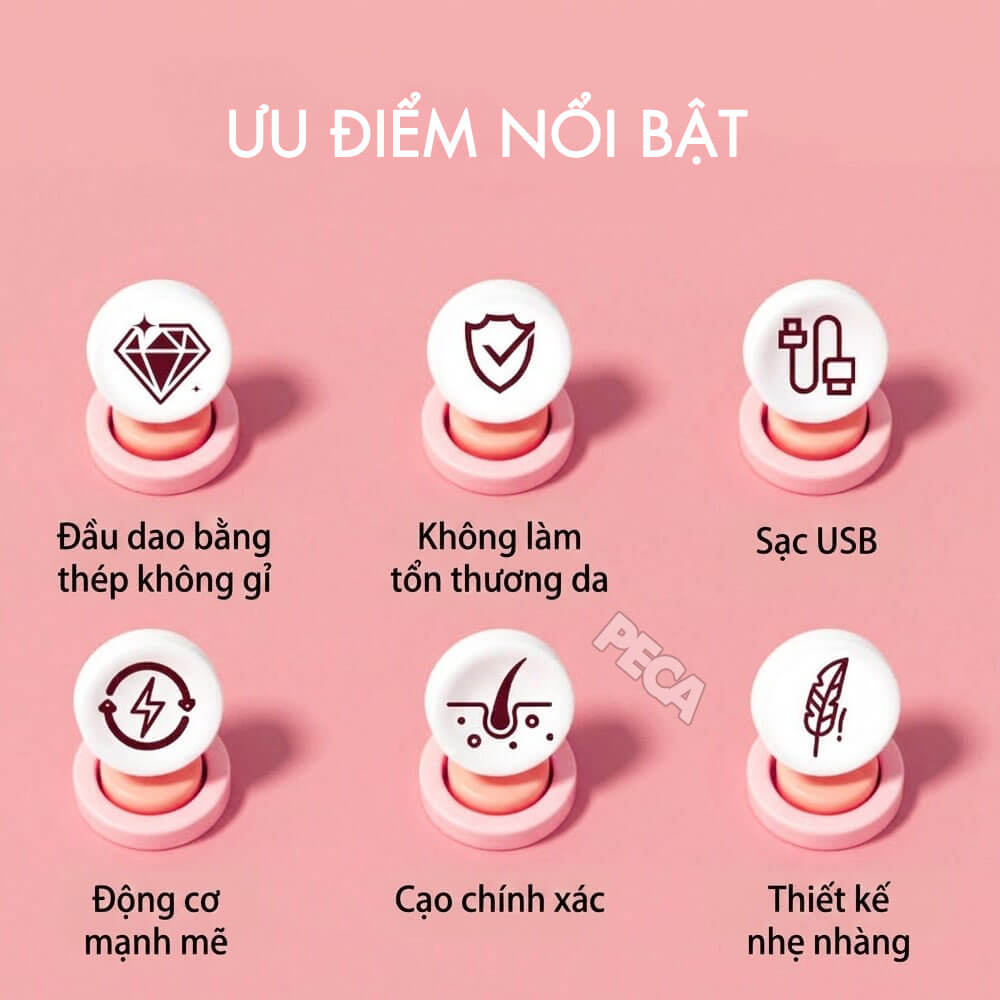 Đèn LED chiếu sáng: Đèn tự động bật khi máy chạy, soi rõ các vùng da khuất bóng hoặc thiếu sáng. Bạn sẽ không bỏ sót bất kỳ sợi lông tơ nhỏ nào.