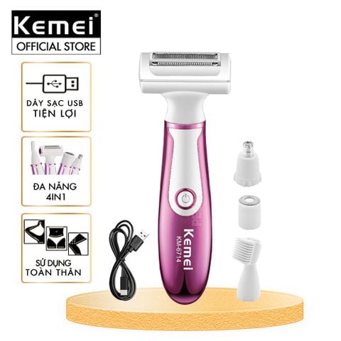 MÁY TẨY LÔNG ĐA NĂNG 4IN1 KEMEI KM-6714 GỒM 4 ĐẦU CẠO TỈA THAY THẾ TIỆN LỢI SỬ DỤNG TOÀN THÂN - HÀNG CHÍNH HÃNG