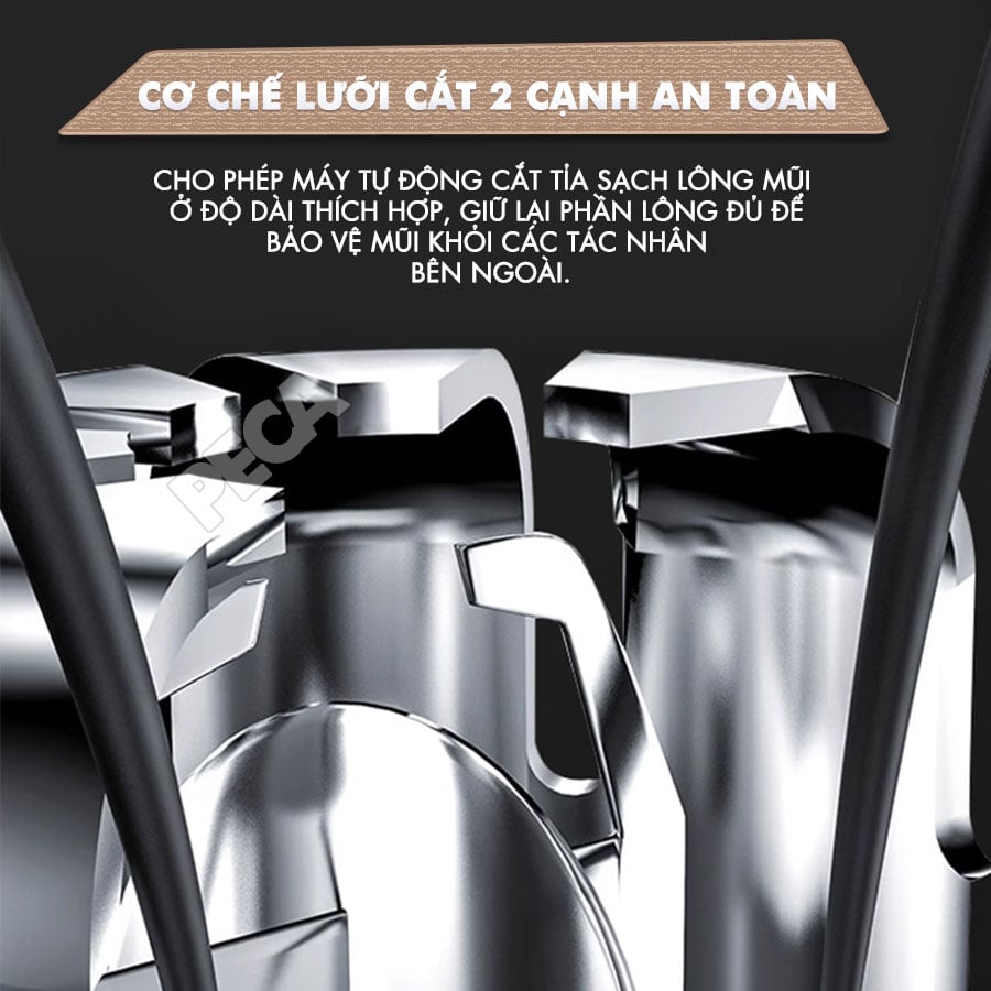 Lưỡi cắt quay với tốc độ cao, được bảo vệ bằng lồng bảo vệ, chỉ để lọt qua những sợi lông, an toàn và không làm tổn thương đến da.