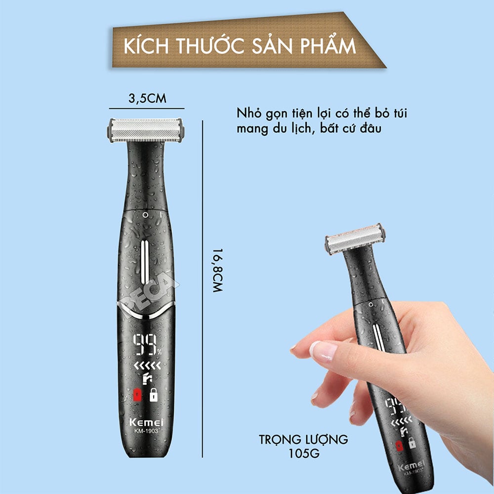 KEMEI KM-1903 MÁY CẠO/TỈA LÔNG BODY CHUYÊN NGHIỆP DÀNH CHO NAM NỮ, LƯỠI KÉP BẢO VỆ DA
