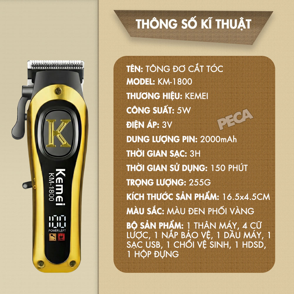TÔNG ĐƠ KEMEI KM-1800 CAO CẤP PIN KHỦNG 2000MAH - LƯỠI ĐIỀU CHỈNH FADE - THIẾT KẾ HIỆN ĐẠI