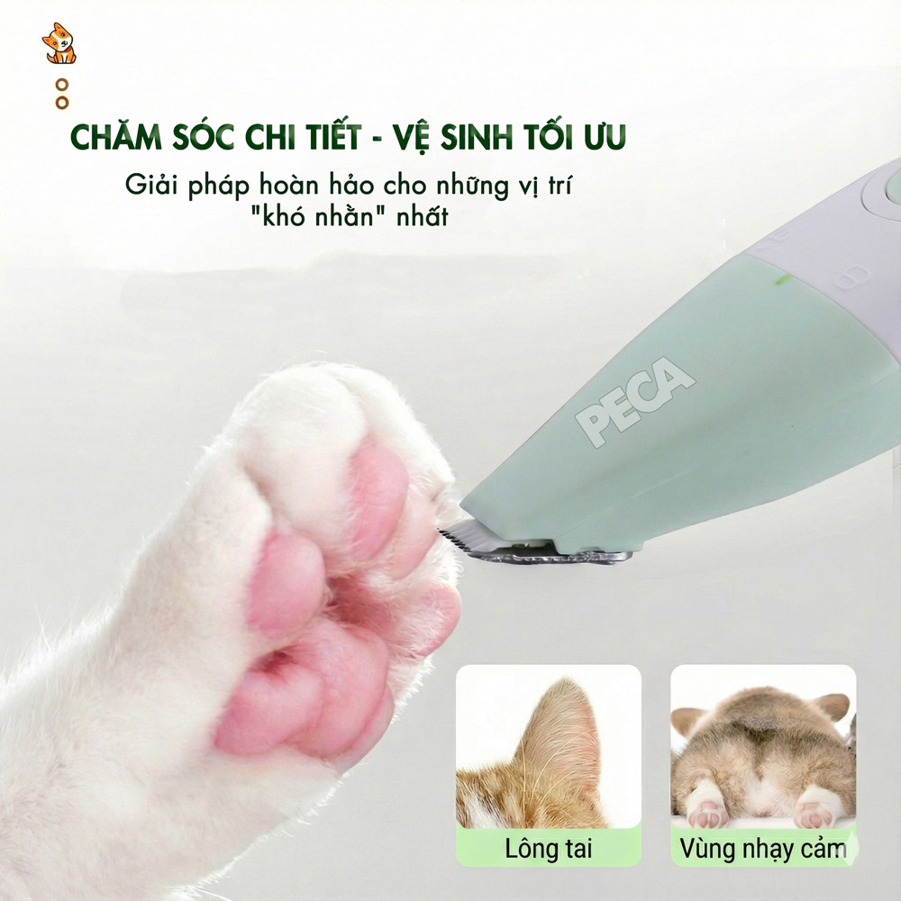 📍 Đầu tỉa chi tiết: Thiết kế siêu nhỏ giúp dọn sạch lông ở kẽ ngón chân, quanh mắt, tai và tạo kiểu nghệ thuật.